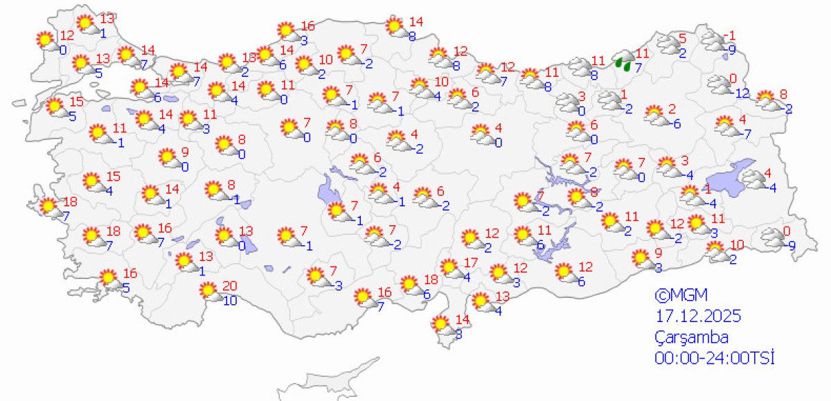 Güney ve batı kesimlerde sıcaklıklar 18-20 dereceye kadar çıkarken, İstanbul çevresi 12-14 derece, Ankara 10-12 derece, doğu illerde ise 6-10 derece civarında olacak.