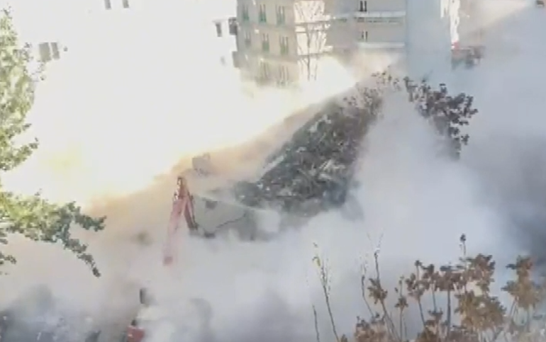 Binadan dökülen molozlar, yok kapatılmadığı için bu sırada caddeden geçen araçların üzerine düştü. Bölge toz bulutu altında kalırken, faciadan dönülen olayda yaralanan olmadı.