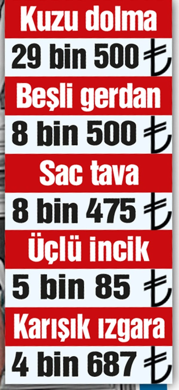 – Tüm Kuzu Dolması: 29 bin beşyüz